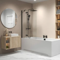 Nuie Pacific Matt Black Profile P-Shaped Bath Screen 1433mm H X 715mm W – 6mm Glass