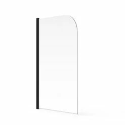 Nuie Pacific Matt Black Profile Round Top Hinged Bath Screen 1430mm H X 790mm W – 6mm Glass