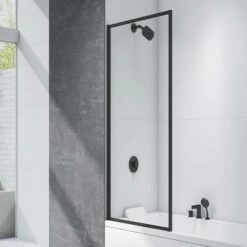 Nuie Pacific Matt Black Profile Hinged Bath Screen 1430mm H X 790mm W – 6mm Glass