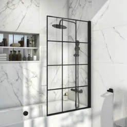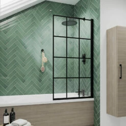 Orbit A6 Black Grid Square Bath Screen 1400mm H X 800mm W – 6mm Glass