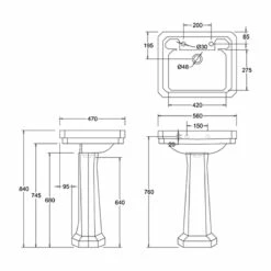 Burlington Victorian Basin With Full Pedestal 560mm Wide 2 Tap Hole