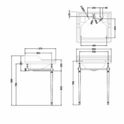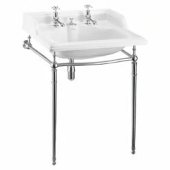Burlington Classic Invisible Overflow Basin With Regal Chrome Wash Stand 650mm Wide 2 Tap Hole