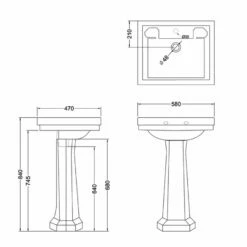 Burlington Contemporary Basin With Regal Full Pedestal 580mm Wide 3 Tap Hole