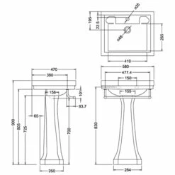 Burlington Contemporary Basin With Regal Full Pedestal 580mm Wide 2 Tap Hole