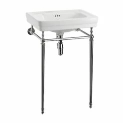 Burlington Classic Square Basin With Chrome Wash Stand 500mm Wide – 1 Tap Hole