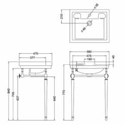 Burlington Contemporary Basin With Chrome Wash Stand 580mm Wide 3 Tap Hole