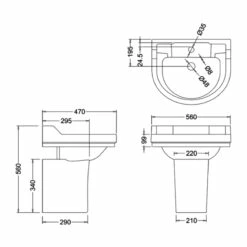 Burlington Edwardian Round Basin With Semi Pedestal 560mm Wide 2 Tap Hole