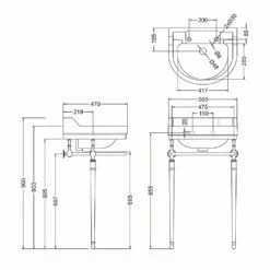 Burlington Edwardian Round Basin With Regal Chrome Wash Stand 560mm Wide 2 Tap Hole