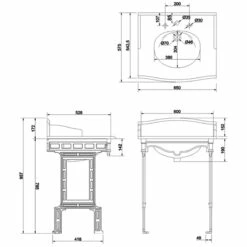 Burlington Georgian Marble Basin With Aluminium Wash Stand 650mm Wide 3 Tap Hole