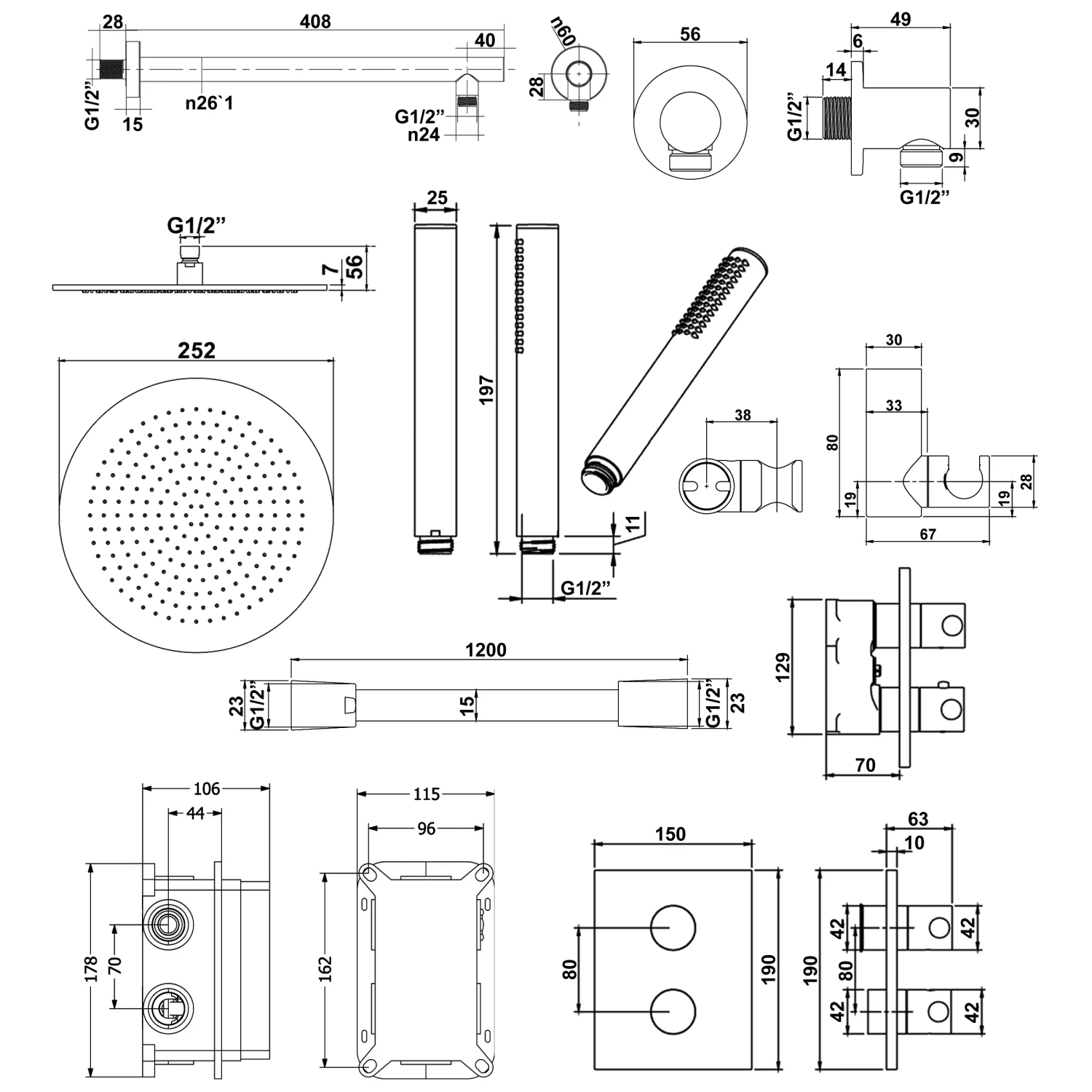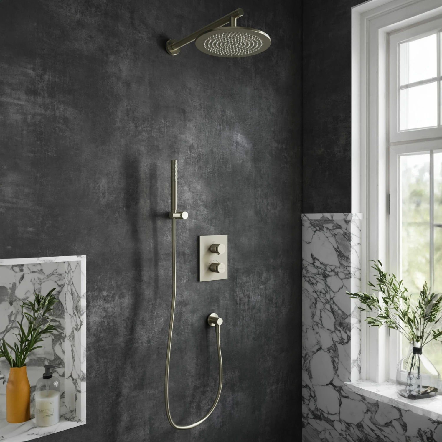 - Supplied complete with shower valve, fixed head, shower arm, shower kit, hand shower holder and wall outlet